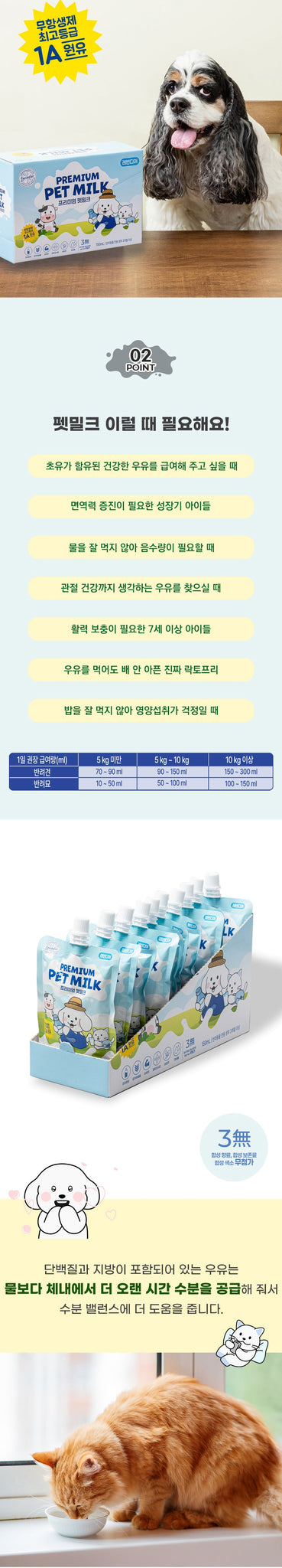 Premium pet milk made from domestically produced 1A raw milk without antibiotics